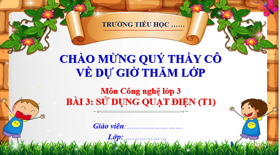 Bài giảng môn công nghệ lớp 3 Hướng dẫn sử dụng quạt điện