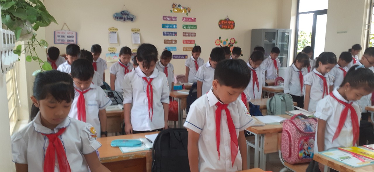 Các em học sinh trường TH Phong Vân tưởng niệm nạn nhân cháy chung cư mi ni Hà Nội