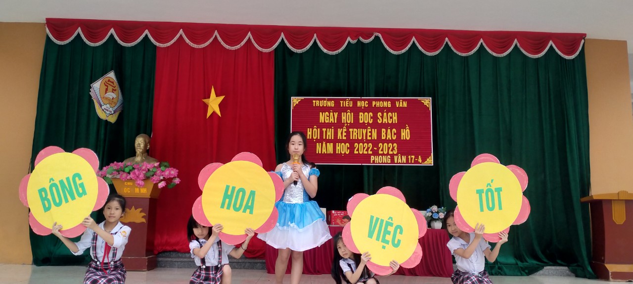Nhằm khơi dậy trong thiếu niên, nhi đồng tình cảm đối với Bác Hồ kính yêu, thi đua thực hiện tốt 5 điều Bác Hồ dạy hướng đến các hoạt động chào mừng kỷ niệm 93 năm Ngày thành lập Đảng Cộng sản Việt Nam (03/02/1930-03/02/2023); 92 năm Ngày thành lập Đoàn TNCS Hồ Chí Minh (26/3/1931-26/3/2023) và 82 năm Ngày thành lập Đội TNTP Hồ Chí Minh (15/5/1941-15/5/2023), ngày 23/01/2021, THư viện trường TH Phong Vân tổ chức Hội thi “Chúng em kể chuyện Bác Hồ” năm học 2022 - 2023.